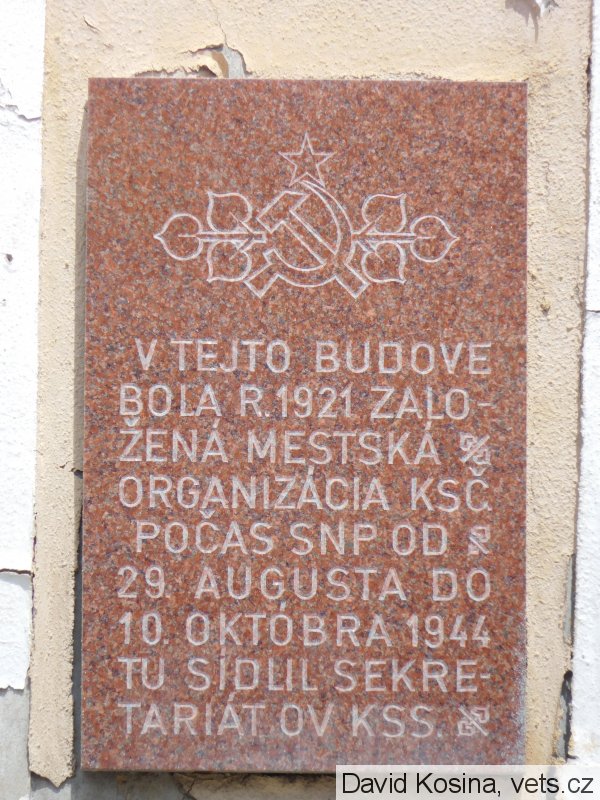 Umístění: Banská Štiavnica, Andreja Kmeťa 2, na fasáde budovyV DOBE SLÁVNEHO