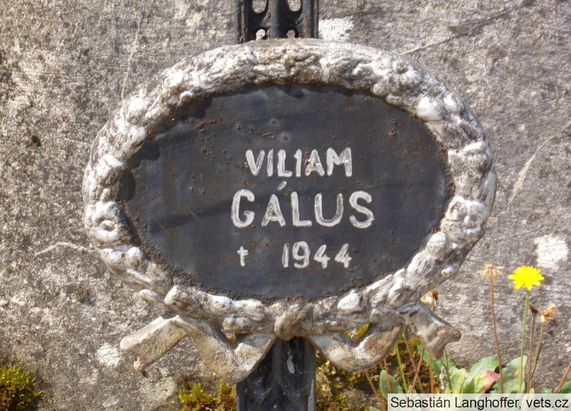 Viliam Gálus sa narodil 20.11.1926. V čase úmrtia bol príslušníkom ozbrojených síl - odbojovej skupiny Sitno. Zajatý bol počas incidentu pri Počuvadlianskom mlyne, kedy nemecká strana likvidovala základňu odbojovej skupiny v mlyne. Časti odbojárov sa z obkľúčeného mlyna podarilo uniknúť, časť z nich padla do nemeckého zajatia. Zajatí odbojári boli neskôr popravení v Turčeku a Kremničke. Viliam Gálus zahynul v decembri 1944 v Dolnom Turčeku.