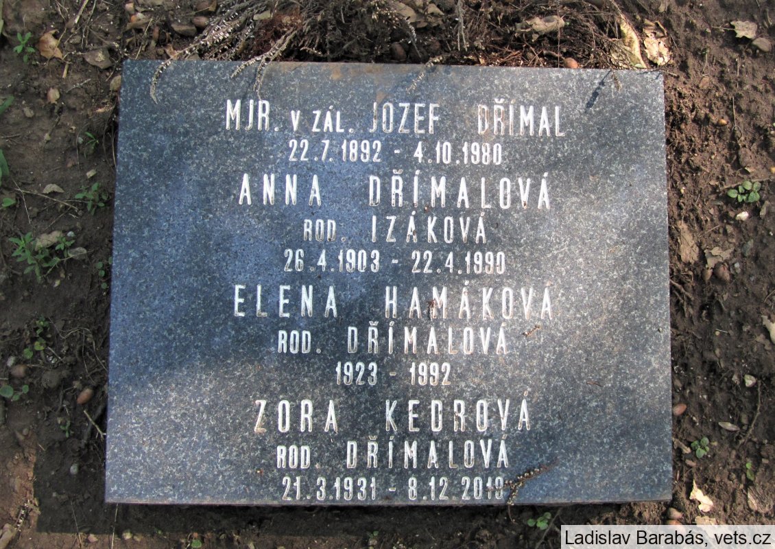 Umístění: Bratislava, Hodonínska, krematórium, sektor 5, chodník 25, hrob č. 1386MJR. V ZÁL. JOZEF DŘÍMAL