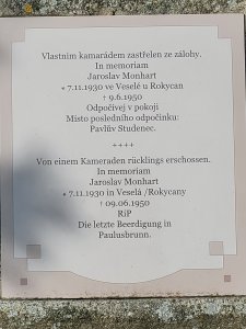 Umístění: Pavlův Studenec - zaniklá obec, hřbitovVlastním kamarádem zastřelen ze zálohy.