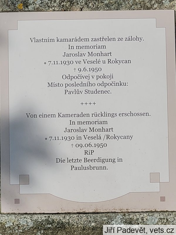 Jaroslav Monhart byl zavražděn příslušníkem Pohraniční stráže při pokusu opustit komunistické Československo.