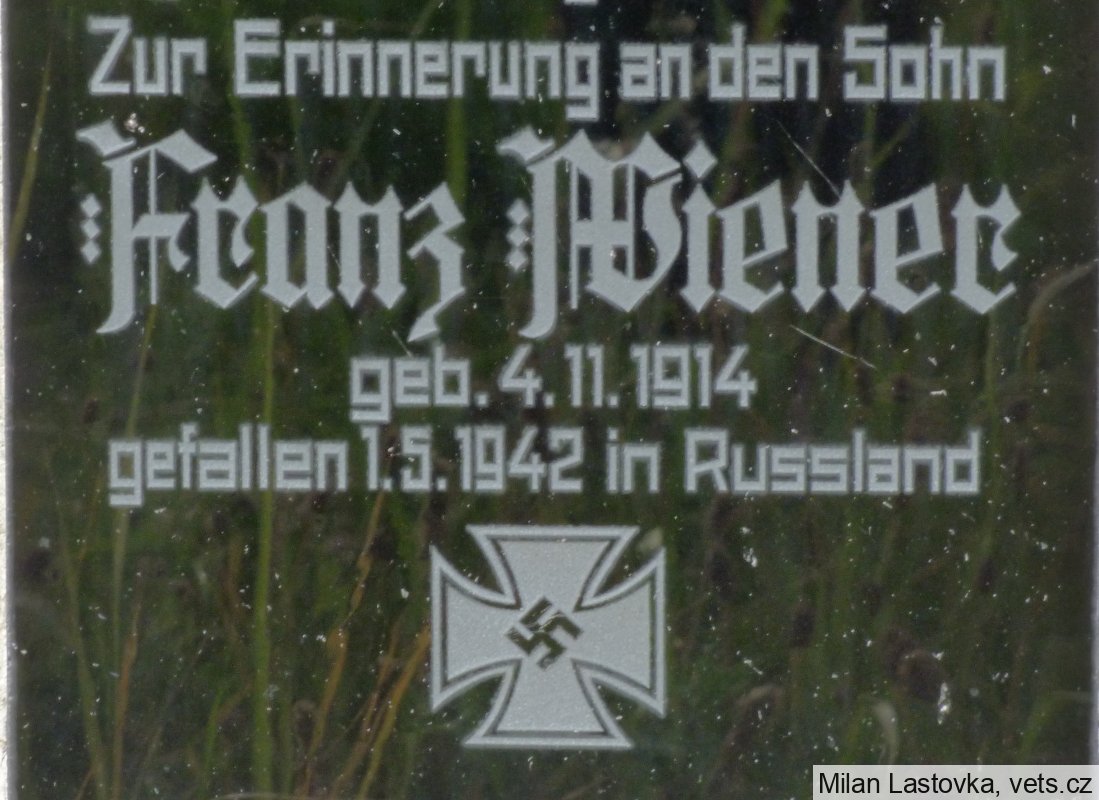 Franz Wiener je pohřben na Kriegsgräberstätte in Sewastopol - Gontscharnoje (UA), blok 5 - jako bezejmenný