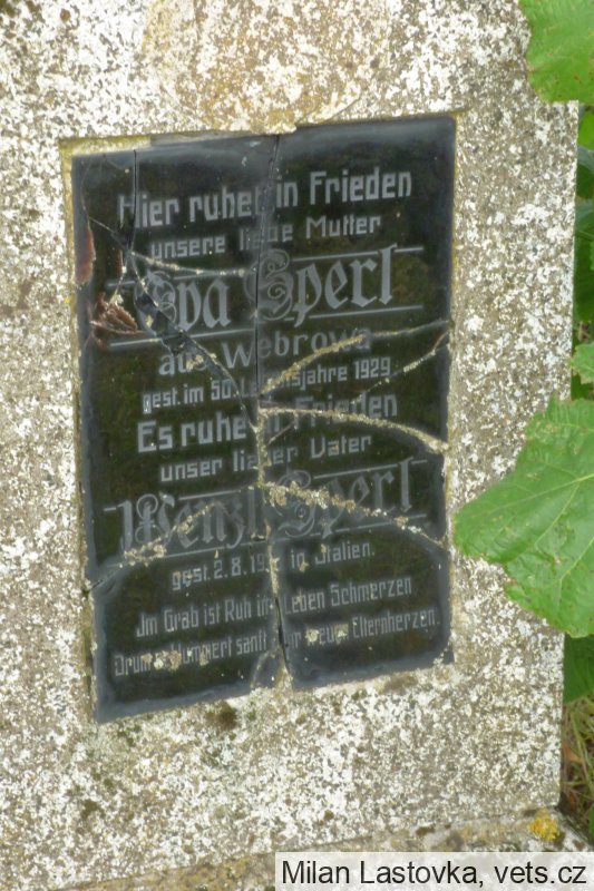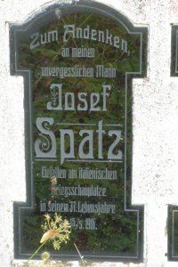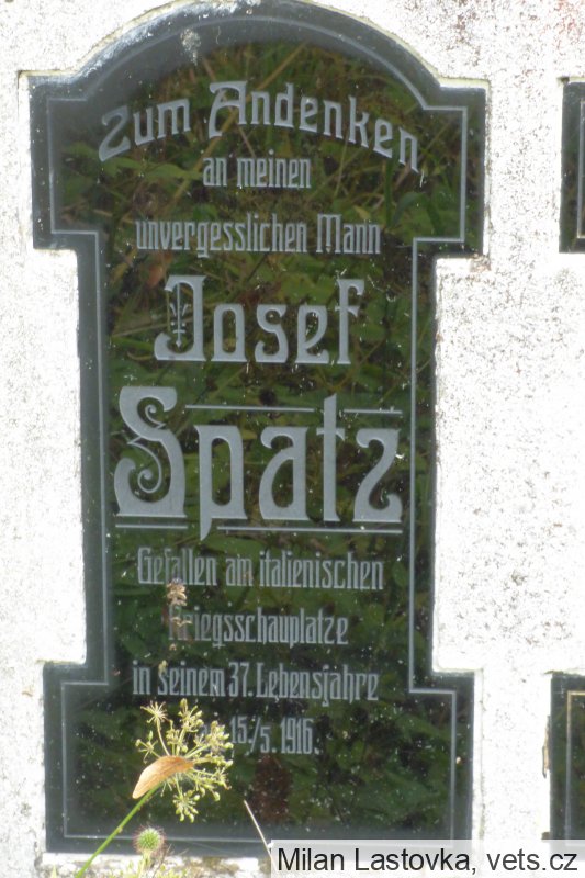 Spatz Josef: *1879 Webrowa, okr. Bischofteinitz (Věvrov, tehdy okr. Horšovský Týn, dnes Domažlice). Inft., k. k. LIR. Nr. 7. +15.5.1916 u Bagni, střelen do hlavy. Pohřben hřbitov St. Giovanni.