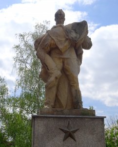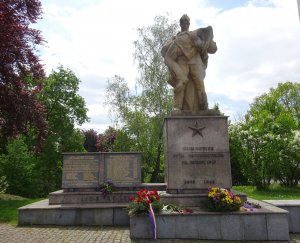 Pískovcové sousoší rudoarmějců, vytvořil v 50. letech 20. století akad. sochař Z. Němeček. Na deskách jsou jména padlých při Ostravské operaci, v koncentračních táborech, při válečných událostech a oběti rasové persekuce. Jména na pomníku jsou nečitelná, psaná azbukou.