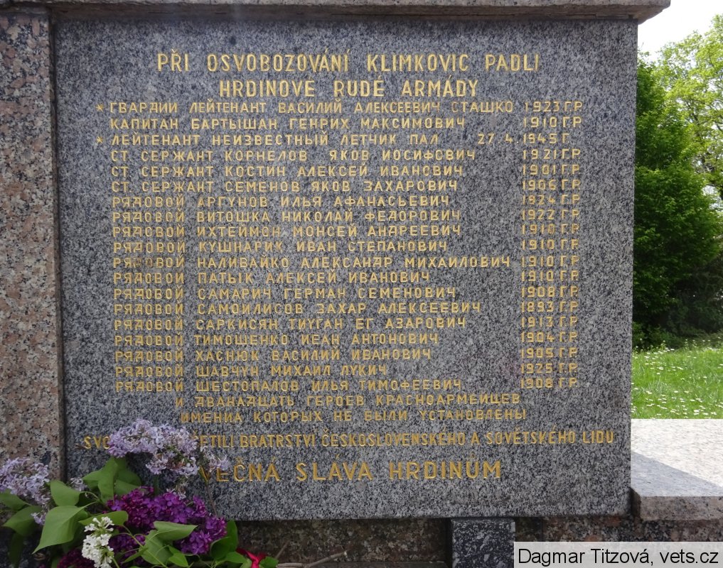 PŘI OSVOBOZOVÁNÍ KLIMKOVIC PADLI
