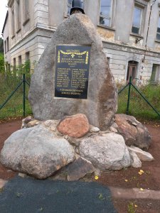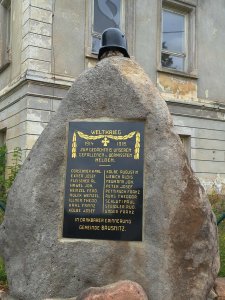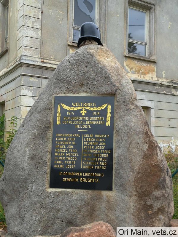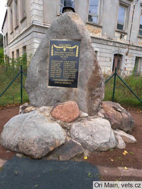 pomník vysvěcen 2. srpna 1925, rozbořen po roce 1948, na původním místě ve školní zahradě nezůstaly žádné znatelné stopy. Celkově obnoveno 2025 do původní podoby a na původním místě. (CEVH)