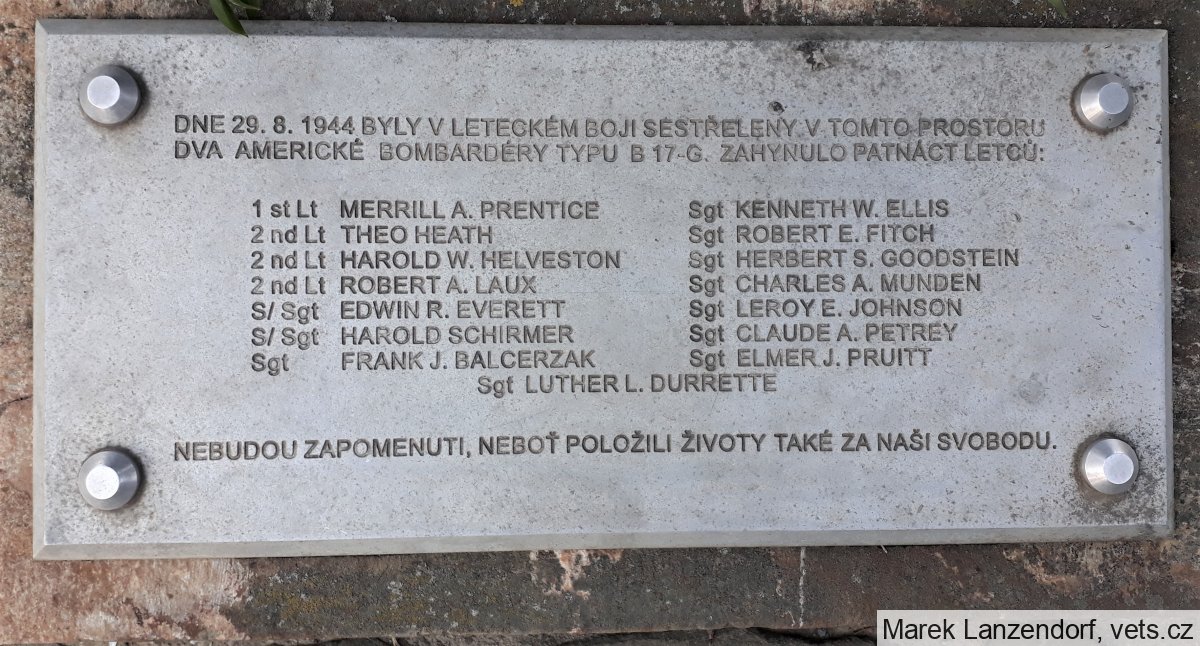 DNE 29. 8. 1944 BYLY V LETECKÉM SOUBOJI SESTŘELENY V TOMTO PROSTORU