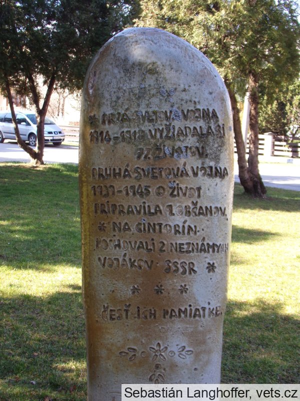 Umístění: Beluša, cintorín, miestna časť Hloža, západná časť, pri plote1945