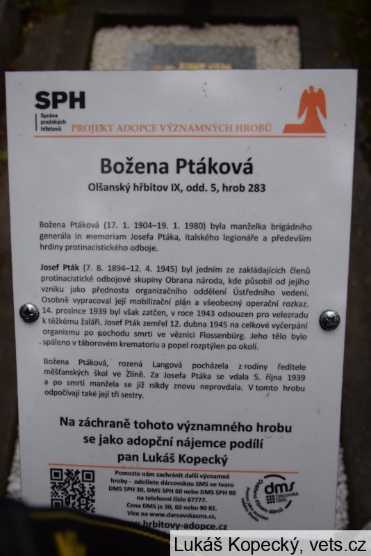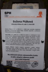 Urna s prstí z koncentračního tábora Flossenbürg, kde 12. dubna 1945 zemřel brigádní generál in memoriam Josef Pták, byla 18.9.2021 vložena do hrobu, kde je pohřbena jeho manželka Božena Ptáková.