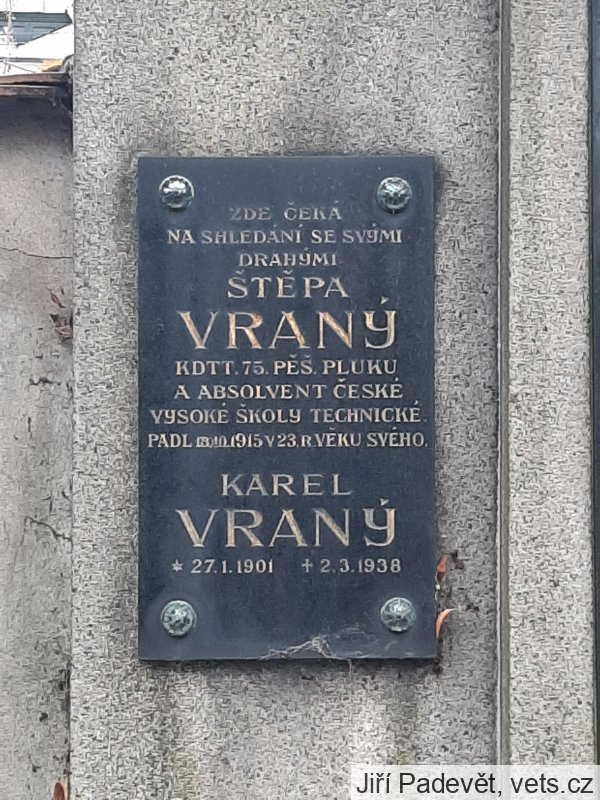 Vraný Štěpán: *1892 Praha. Svobodný. ResKadett., IR. Nr. 75, 5. FeldKomp. +13.10.1915 východně od Jezierna, Zborów, Halič (dnes Ozerna, Ternopilská oblast, Ukrajina), střelná rána do krku a prsou. Následujícího dne pohřben Jezierna.
