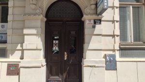 Umístění: Brno, Hybešova 726/42, k.ú. Staré Brno, v dlažbě chodníku před vchodem