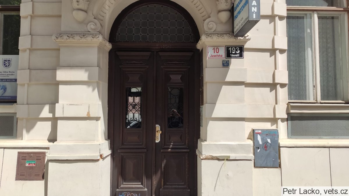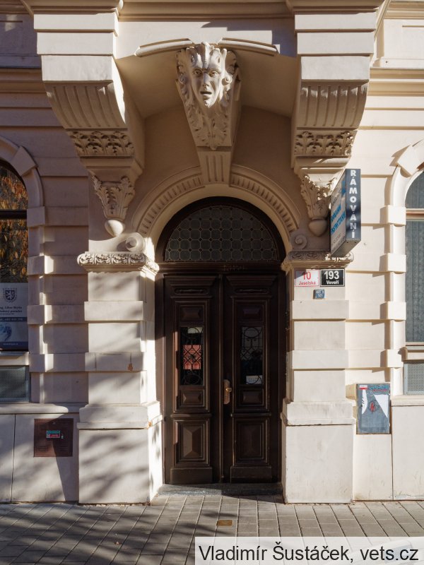 Umístění: Brno, Jaselská 193/10, zeď mezi okny vedle vchodu do měšťanského domu, část Veveří