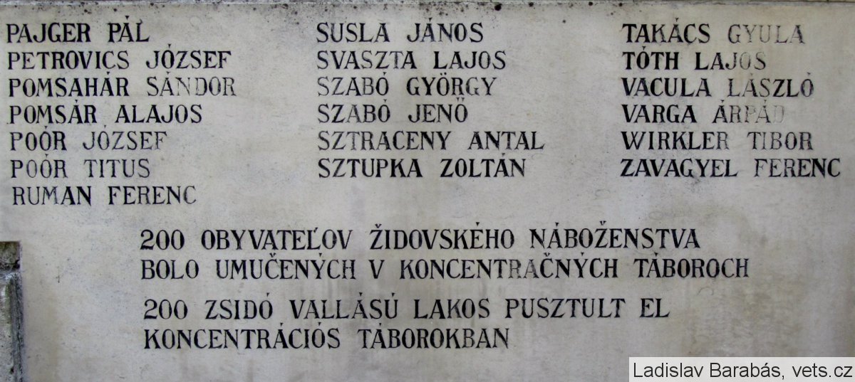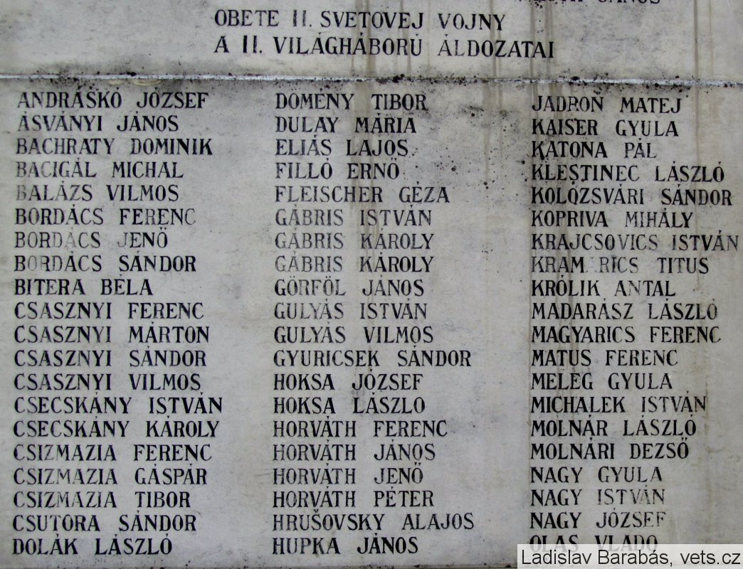ANDRASKÓ JÓZSEF, ÁSVÁNYI JÁNOS, BACHRATY DOMINIK, BACIGÁL MICHAL, BALÁZS VILMOS, BORDÁCS FERENC, BORDÁCS JENŐ, BORDÁCS SÁNDOR, BITERA BÉLA, CSASZNYI FERENC, CSASZNYI MÁRTON, CSASZNYI SÁNDOR, CSASZNYI VILMOS, CSECSKÁNY ISTVÁN, CSECSKÁNY KÁROLY, CSIZMAZIA FERENC, CSIZMAZIA GÁSPÁR, CSIZMAZIA TIBOR, CSUTORA SÁNDOR, DOLÁK SÁNDOR, DÖMÉNY TIBOR, DULAY MÁRIA, ELIÁS LAJOS, FILLÓ ERNŐ, FLEISCHER GÉZA, GÁBRIS ISTVÁN, GÁBRIS KÁROLY, GÁBRIS KÁROLY, GÖRFÖZ JÁNOS, GULYÁS ISTVÁN, GULYÁS VILMOS, GYURICSEK SÁNDOR, HOKSA JÓZSEF, HOKSA LÁSZLÓ, HORVÁTH FERENC, HORVÁTH JÁNOS, HORVÁTH JENŐ, HORVÁTH PÉTER, HRUŠOVSKY ALAJOS, HUPKA JÁNOS, JADROŇ MATEJ, KAISER GYULA, KATONA PÁL, KLESTINEC LÁSZLÓ, KOLOZSVÁRI SÁNDOR, KOPRIVA MIHÁLY, KRAJCSOVICS ISTVÁN, KRAMARICS TITUS, KRÓLIK ANTAL, MADARÁSZ LÁSZLÓ, MAGYARICS FERENC, MATUS FERENC, MELEG GYULA, MICHALEK ISTVÁN, MOLNÁR LÁSZLÓ, MOLNÁRI DEZSŐ, NAGY GYULA, NAGY ISTVÁN, NAGY JÓZSEF, OLAS VLADO, PAJGER PÁL, PETROVICS JÓZSEF, POMSAHÁR SÁNDOR, POMSÁR ALAJOS, POÓR JÓZSEF, POÓR TITUS, RUMAN FERENC, SUSLA JÁNOS, SVASZTA LAJOS, SZABÓ GYÖRGY, SZABÓ JENŐ, SZTRACENY ANTAL, SZTUPKA ZOLTÁN, TAKÁCS GYULA, TÓTH LAJOS, VACULA LÁSZLÓ, VARGA ÁRPÁD, WIRKLER TIBOR, ZAVAGYEL FERENC