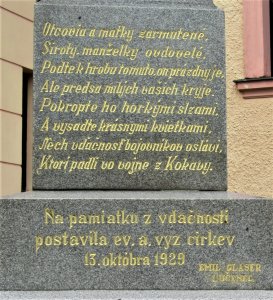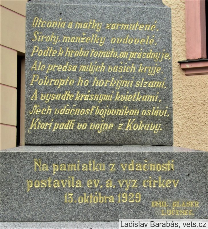 Umístění: Kokava nad Rimavicou, Bakulíniho, vedľa ev. kostola1914 – 1919