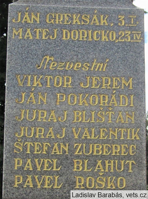 ONDREJ MIHAL, 25.II., JÁN JAKUBEC, 16.IV., JÁN POČTÁRIK, 30.VII., JÁN ROMAN, 5.IX., PAVEL ZUBEREC, 19.IX., JÁN ZÁZIK, 24.IX.