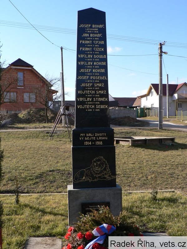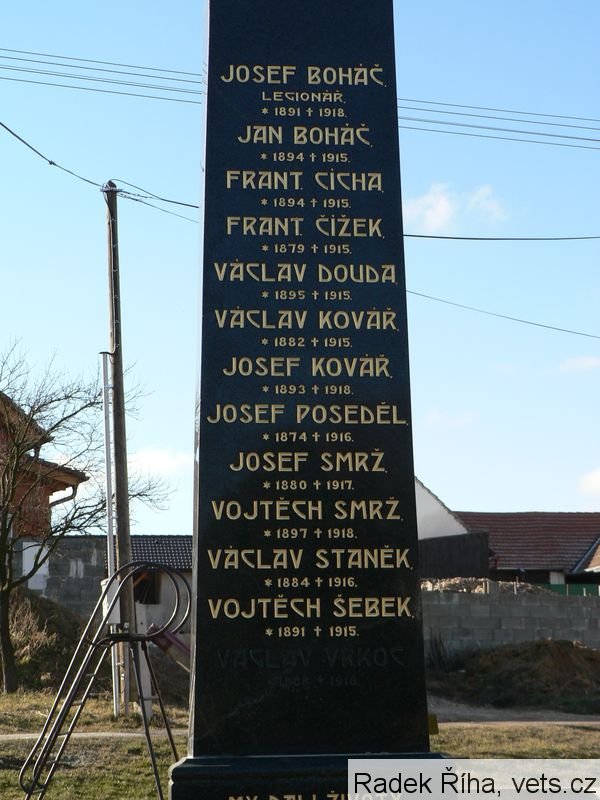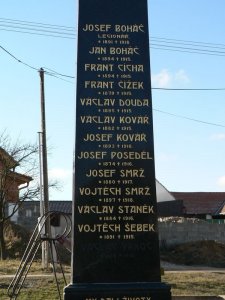 Josef Boháč legionář *1894 +1915, Frant. Cícha *1894 +1915, Frant. Čížek *1879 +1915, Václav Douda *1895 +1915, Josef Kovář *1893 +1918, Josef Poseděl *1874 +1916, Josef Smrž *1880 +1917, Vojtěch Smrž *1897 +1918, Václav Staněk *1884 +1916, Vojtěch Šebek *1891 +1915