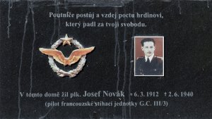 V tomto domě žil plk. Josef Novák *6.3.1912 +2.6.1940