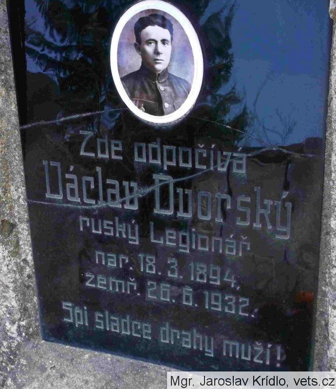 Dvorský Václav: 18.3.1894 Praha. Bydliště: Rašovice okr. Uhlířské Janovice. RU armáda: Inft., IR. Nr. 92. Zajetí: 11.2.1915 Karpaty. Datum a místo přihlášení do legií: 1.4.1918 Novopole. Zařazení do legie: 15.5.1918. Legie: Čs. legie v Rusku. Útvar: 5. střelecký pluk. Hodnost: vojín. Konec v legiích: 28.5.1921. Dne 26.6.1932 spáchal sebevraždu oběšením. (zdroj: VÚA)