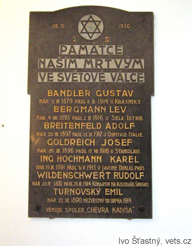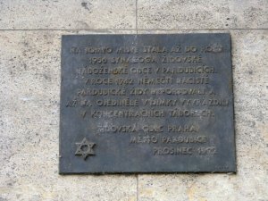 původně na objektu v ul. 17. listopadu, následně přemístěna do Obřadní síně židovského hřbitova