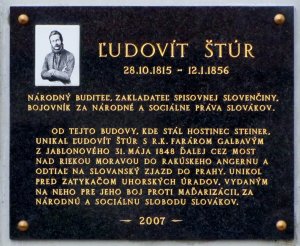 Ľudovít Štúr (29.10.1815 Uhrovec - 12.1.1856 Modra) politik, básnik, publicista, jazykovedec a kodifikátor spisovnej slovenčiny. Počas revolúcie v rokoch 1848-49 sa ako člen Slovenskej národnej rady zúčastnil zimnej výpravy slovenských dobrovoľníkov. Po porážke revolúcie žil pod policajným dozorom.
