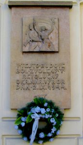 Pod pamätnou tabuľou bola pôvodne busta Janka Jesenského - viz další foto v příloze.