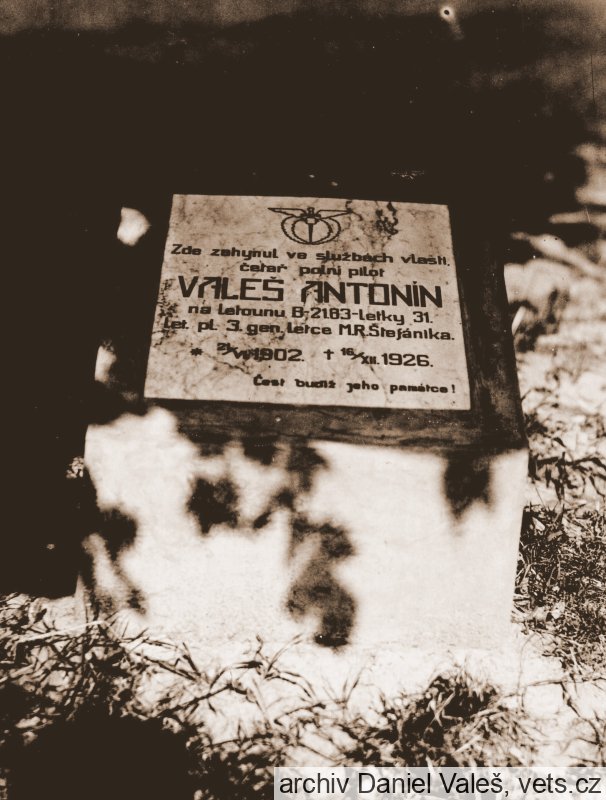 Pamätník pripomína miesto tragickej leteckej havárie, ku ktorej došlo 16. decembra 1926. V tento deň plnil úlohy leteckého výcviku vo vzdušnom priestore neďaleko Bratislavy s lietadlom Avia B 21 (výrobné číslo 63) čatár poľný pilot letec Antonín Valeš (narodený v roku 1902 v Týnci – dnes Panenský Týnec, okr. Louny, Česká republika), príslušník stíhacej letky 31 dislokovanej na vajnorskom letisku. Letka bola organizačne začlenená do II. perute s veliteľstvom vo Vajnoroch podriadenej Leteckému pluku 3 “Generála letca M.R. Štefánika“ so sídlom veliteľstva v Nitre.