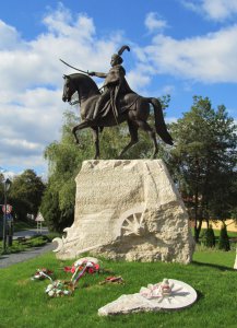 Autorom jazdeckej sochy je maďarský sochár Lajos Győrfy.