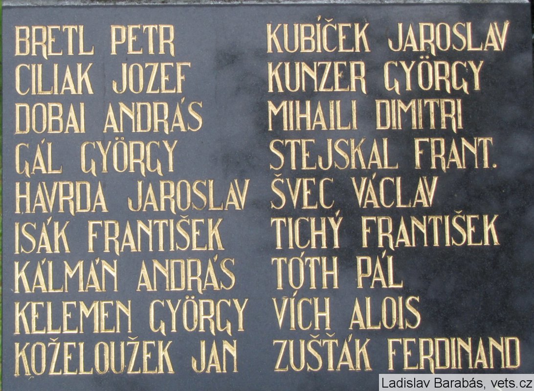 BRETL PETR, CILIAK JOZEF, DOBAI ANDRÁS, GÁL GYÖRGY, HAVRDA JAROSLAV, ISÁK FRANTIŠEK, KÁLMÁN ANDRÁS, KELEMEN GYÖRGY, KOŽELOUŽEK JAN, KUBÍČEK JAROSLAV, KUNZER GYÖRGY, MIHALI DIMITRI, STEJSKAL FRANT., ŠVEC VÁCLAV, TICHÝ FRANTIŠEK, TÓTH PÁL, VÍCH ALOIS, ZUŠŤÁK FERDINAND