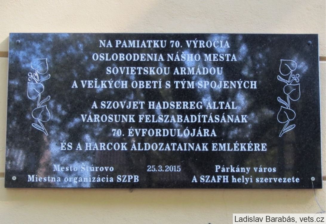 Umístění: Štúrovo, Hlavná 12, na budove galérieNA PAMIATKU 70. VÝROČIA