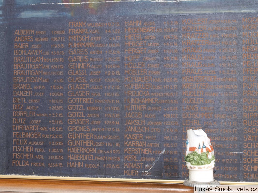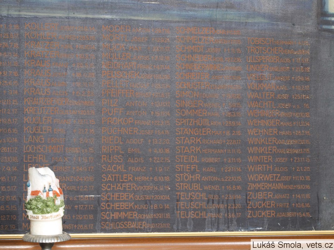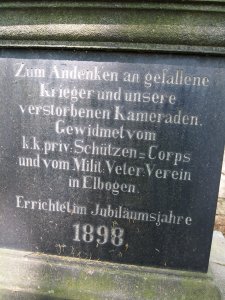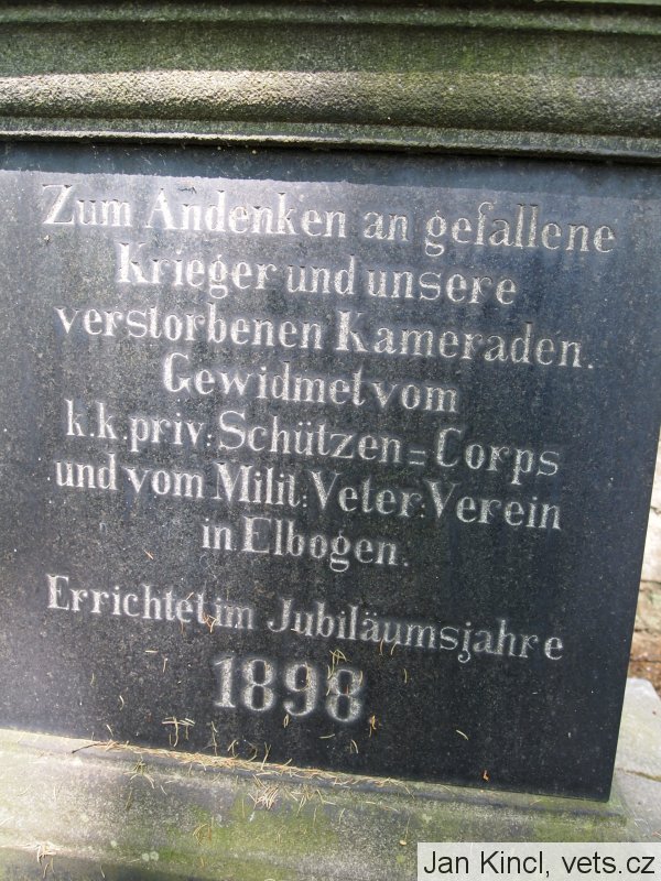 Umístění: Loket, Kostelní, kostel sv. VáclavaZum Gedächtnis der im Kriege 1914-18 gefallenen Heldensöhne der Stadt Elbogen.