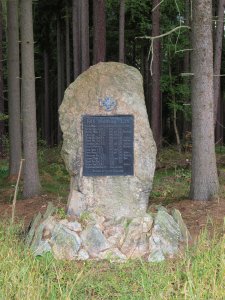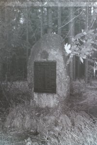 Černobílá fotografie pochází z roku 1994 - stav před krádeží ozdoby nad deskou.