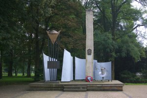 Památník byl odhalen 18.6.1972 v bývalém zámeckém parku přiléhajícím k areálu školy. Pamětní deska se seznamem čs. občanů padlých při Karpatsko-dukelské operaci na území Polska byla na památníku odhalena 5.10.2004.