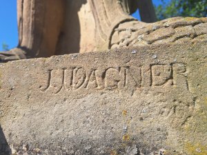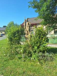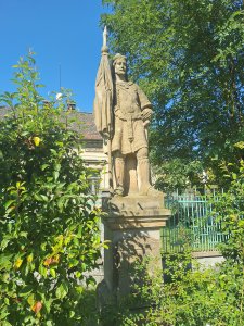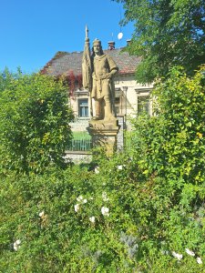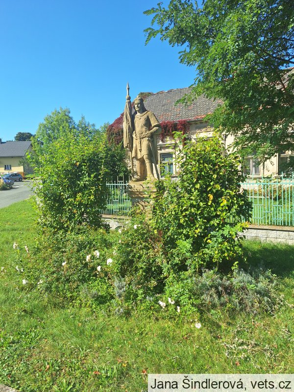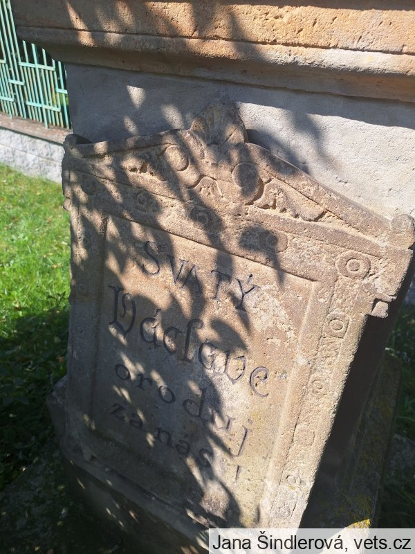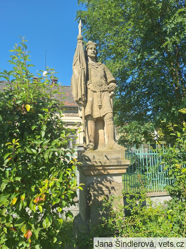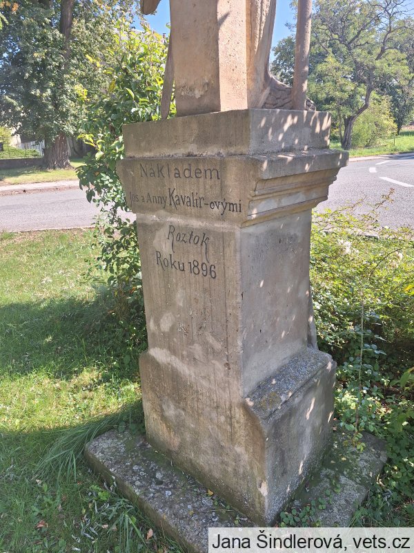 Socha sv. Václava vybudována: Nákladem Jos. a Anny Kavalír-ovými Roztok 1896. (zadní strana)