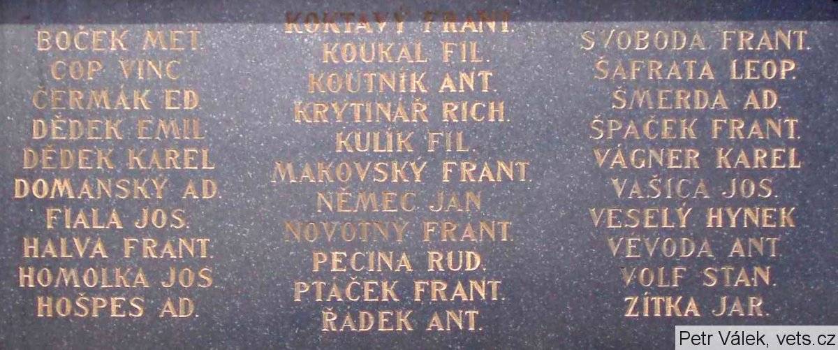 KOKTAVÝ FRANT., KOUKAL FIL., KOUTNÍK ANT., KRYTINÁŘ RICH., KULÍK FIL., MAKOVSKÝ FRANT., NĚMEC JAN, NOVOTNÝ FRANT., PECINA RUD., PTÁČEK FRANT., ŘÁDEK ANT.