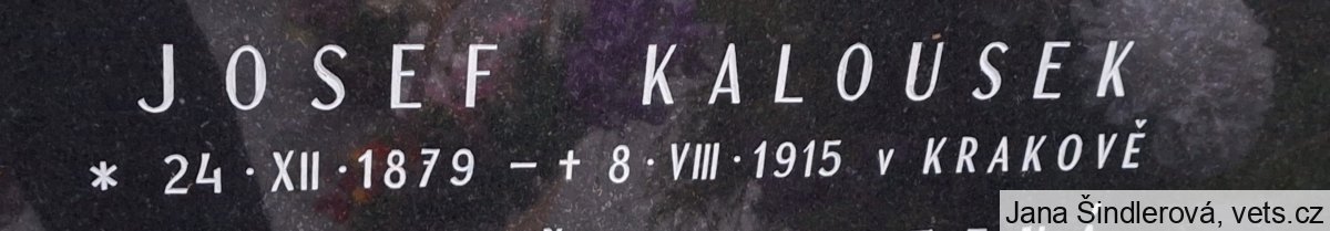 Josef Kalousek, nar. 1879 Kunvald, okr. Žamberk, datum a místo úmrtí: 8.8.1915 Krakov, Halič, bojiště: severní fronta (ruské bojiště), místo pohřbení: Krakov.