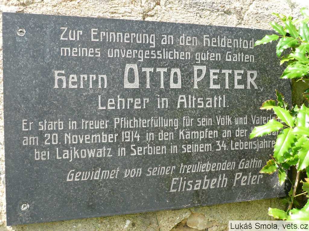 Zur Erinnerung an den heldentod meines unvergesslichen guten Gatten herrn Otto Peter,lehrer in Altsattl.