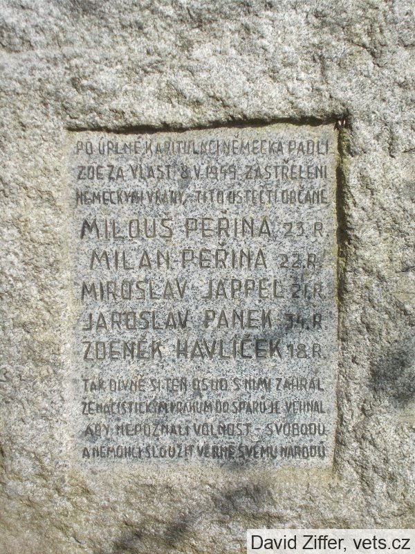 ZASTŘELENI V KVĚTNOVÝCH DNECH: HAVLÍČEK ZDENĚK, JAPPL JAROSLAV, KAVICKÝ VÁCLAV, KOVARČÍK FRANTIŠEK, PÁNEK JAROSLAV, PAŠTIKA RUDOLF, PEŘINA MILAN, PEŘINA MILOŠ, ŠŤOVÍČEK RUDOLF