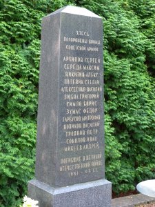 ZDE JSOU POHŘBENI VOJÁCI SOVĚTSKÉ ARMÁDY: