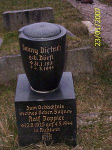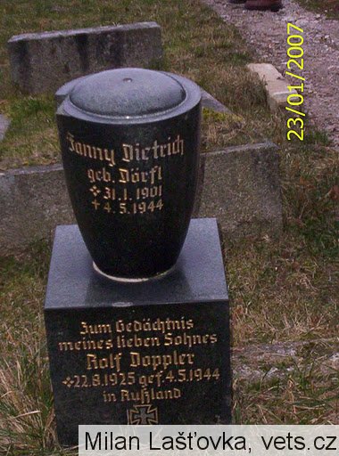 Doppler Rolf: *22.8.1925 Horní Slavkov (tehdy Schlaggenwald). Unteroffizier. +4.5.1944 lazaret Constanza, Rumunsko a tamtéž pohřben. Hrob 20, řada 1. (zdroj: volksbund.de)