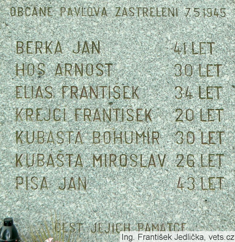 OBČANÉ PAVLOVA ZASTŘELENI 7.5.1945