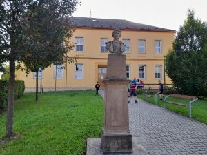 Umístění: Hrabová, před budovou ZŠ č.p. 52Nápis: