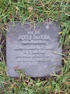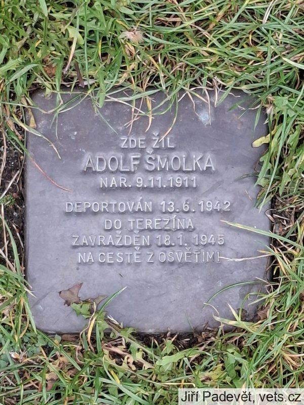 Adolf Šmolka byl do Ghetta Terezín deportován 13.6.1942 transportem AAd, vypraveným z Kolína. Do Auschwitz Birkenau byl deportován 28.10.1944 transportem Ev. Zahynul na pochodu smrti.