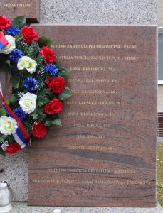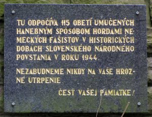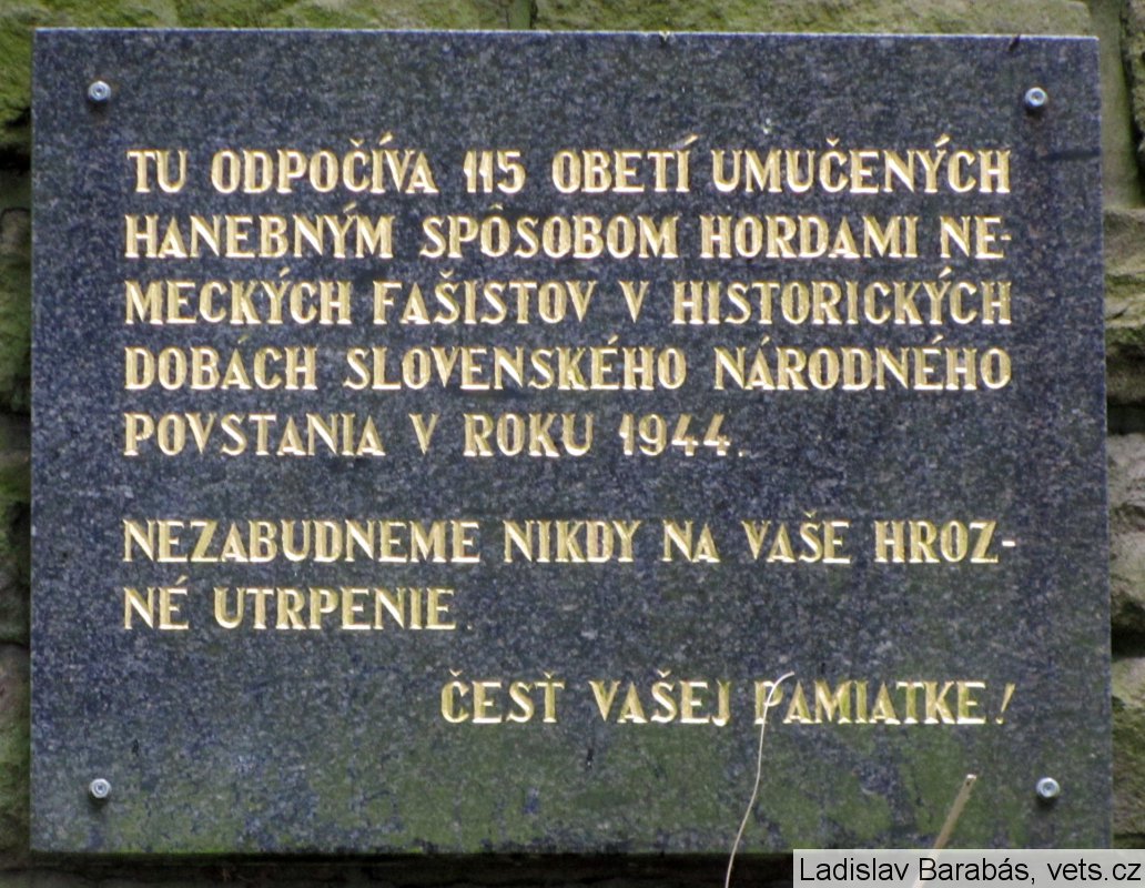 Umístění: Turčianske Teplice, na okraji lesa vpravo od cesty Horná Štubňa - Turčianske Teplice (oproti Dolnej Štubni)TU ODPOČÍVA 115 OBETÍ UMUČENÝCH