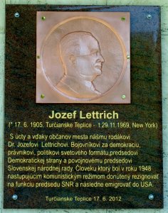 Umístění: Turčianske Teplice, Partizánska 1, budova Mestského úradu Turčianske TepliceJozef Lettrich