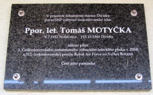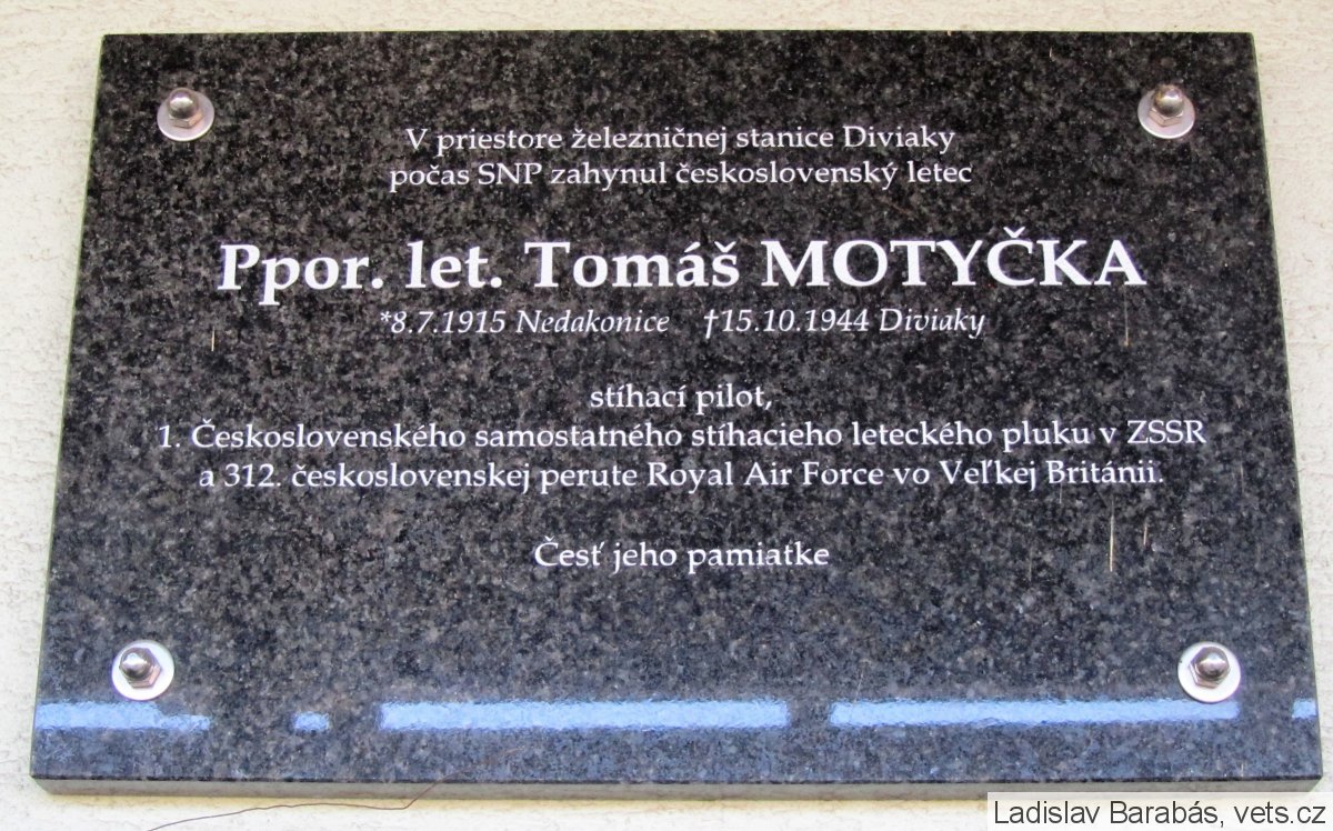 Tomáš Motyčka sa narodil 8.7.1915 v Nedakoniciach. V roku 1939 utiekol do Poľska a odtiaľ do Veľkej Británie, kde slúžil v RAF. V roku 1943 sa dobrovoľne prihlásil na východný front a preškolil sa na lietadlo La-5FN. 17.9.1944 pristál ako príslušník 1. Československého samostatmého stíhacieho leteckého pluku na letisku Zolná a bojoval v SNP. 15.10.1944 zahynul pri útoku na nemeckú autokolónu. Nemci ho pochovali neďaleko trosiek jeho lietadla. Neskôr mu občania Diviak vystrojili dôstojný pohreb a pochovali ho ako neznámeho hrdinu. Po oslobodení boli jeho ostatky vyzdvihnuté a pochované v rodnej obci.