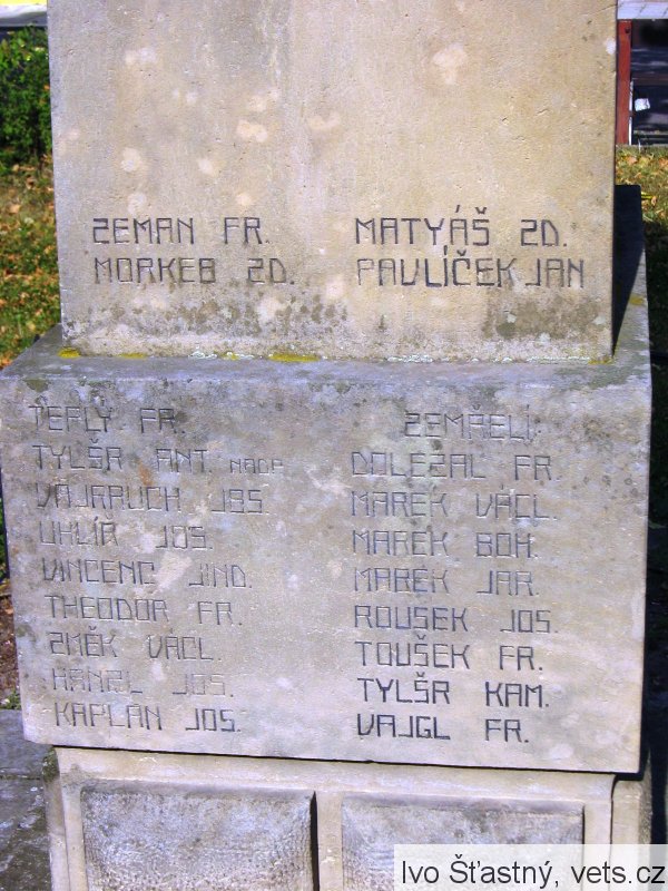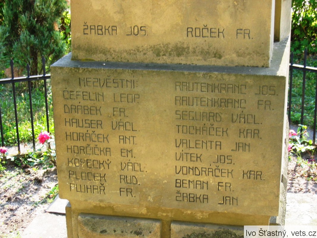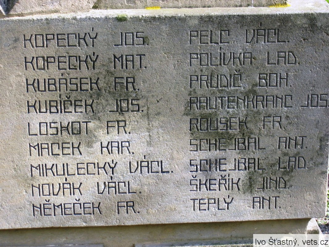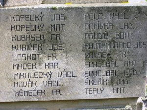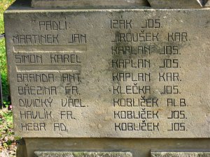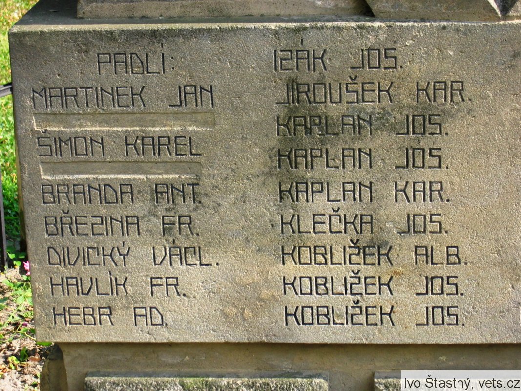 MARTINEK JAN, ŠIMON KAREL, BRANDA ANT., BŘEZINA FR., DIVICKÝ VÁCL., HAVLÍK FR., HEBR AD., IZÁK JOS., JIROUŠEK KAR., KAPLAN JOS., KAPLAN JOS., KAPLAN KAR., KLEČKA JOS., KOBLÍŽEK ALB., KOBLÍŽEK JOS., KOBLÍŽEK JOS.