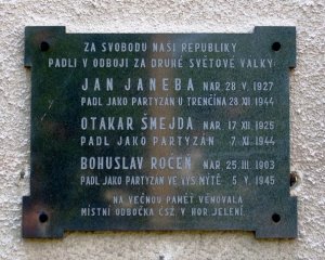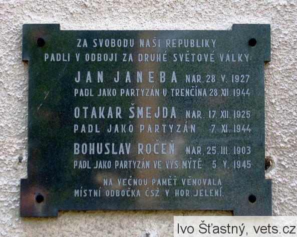 BOHUSLAV ROČEŇ NAR. 25.III.1903 PADL JAKO PARTYZÁN VE VYS. MÝTĚ 5.V.1945