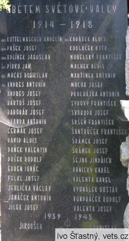 VOJ.KARÁSEK ALOIS, KUDLÁČEK OTTO, MOHELSKÝ FRANTIŠEK, MACHEK ALOIS, MARTINEK ANTONÍN, MUCHA JOSEF, PROCHÁZKA ANTONÍN, SYROVÝ FRANTIŠEK, SVOBODA JOSEF, SRŠEŇ FRANTIŠEK, ŠANTRŮČEK FRANTIŠEK, ŠRÁMEK JOSEF, ŠRÁMEK JOSEF, ŠEJNA JINDŘICH, VANICKÝ KAREL, VALENTA KAREL, VYHNÁLEK GUSTAV, VONDRÁČEK RUDOLF, VALENTA JOSEF