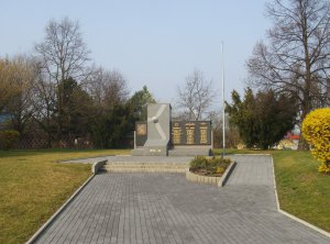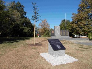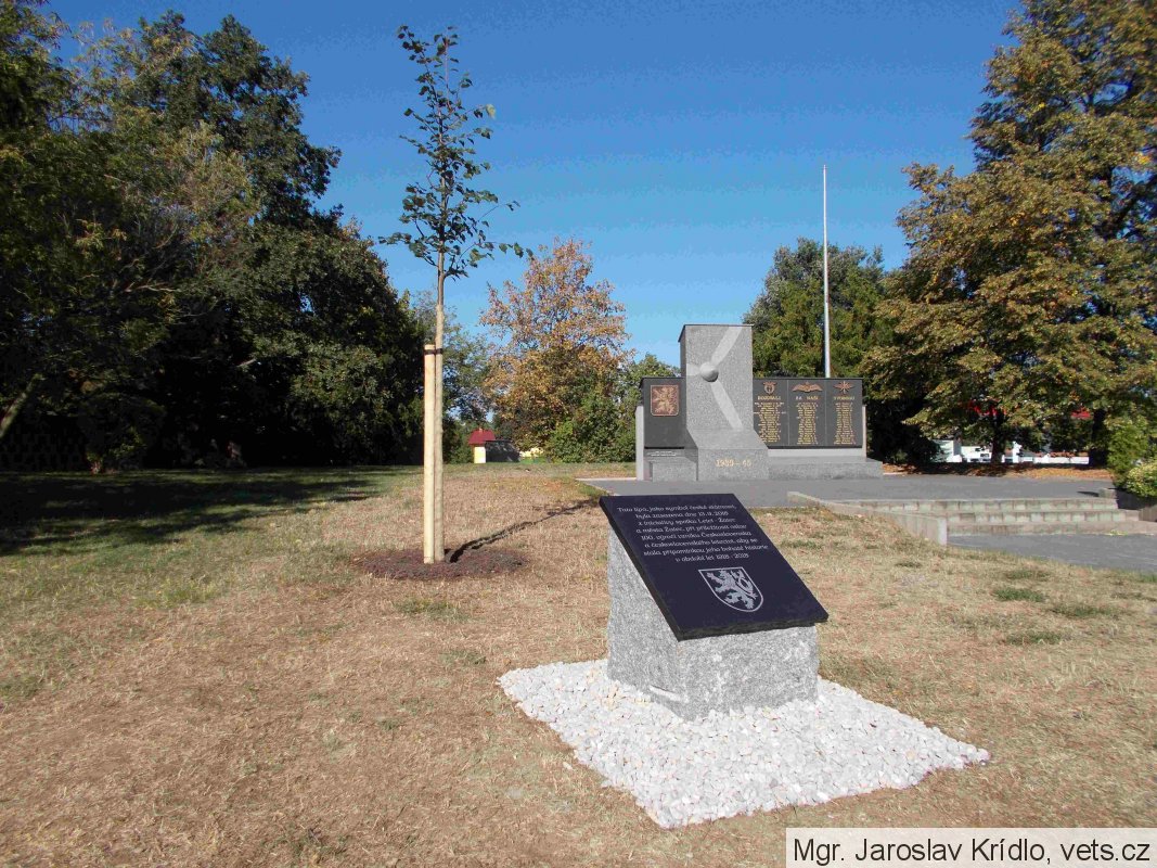 Pomník s obnovenou pamětní deskou, umístěnou šikmo, horizontálně, ke kraji travnaté plochy, na místo původní pamětní desky se jmény 11 obětí a počtem 26 obětí neznámých rudoarmějců, nově doplněnou textem z náhrobku a dvěma jmény psaných azbukou, por. Kuzněcov a ppor. Ševčenko. Dle vyjádření paní Soni Freyntové - správkyně hřbitova, byla tato výměna desky provedena na základě aktivity ruské ambasády počátkem jara roku 2016, k příležitosti výročí ukončení 2. sv. války.