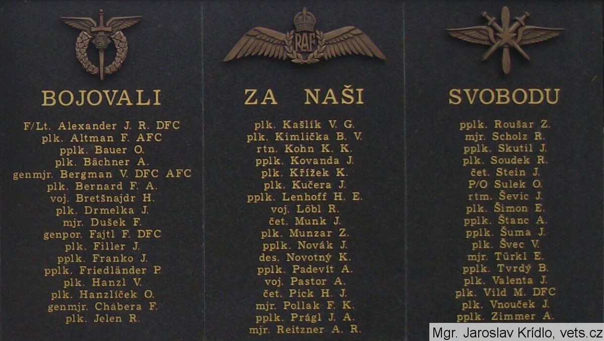 Bergman Václav, generálmajor, nar. 27.8.1915, Domoušice, okres Louny, osobní číslo Z; L-7; RAF/81884. Odveden 2.10.1939, Francie; Paříž, poručík letectva z pov. čs.